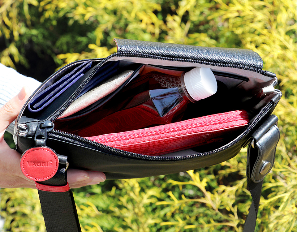 メインスペースは、ペットボトルが横にすっぽり入るサイズ。さらに財布やエコバッグ、小さなポーチも合わせて収納でき、スリムな見た目からは想像できないほどの収納力です。